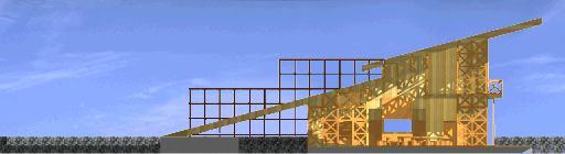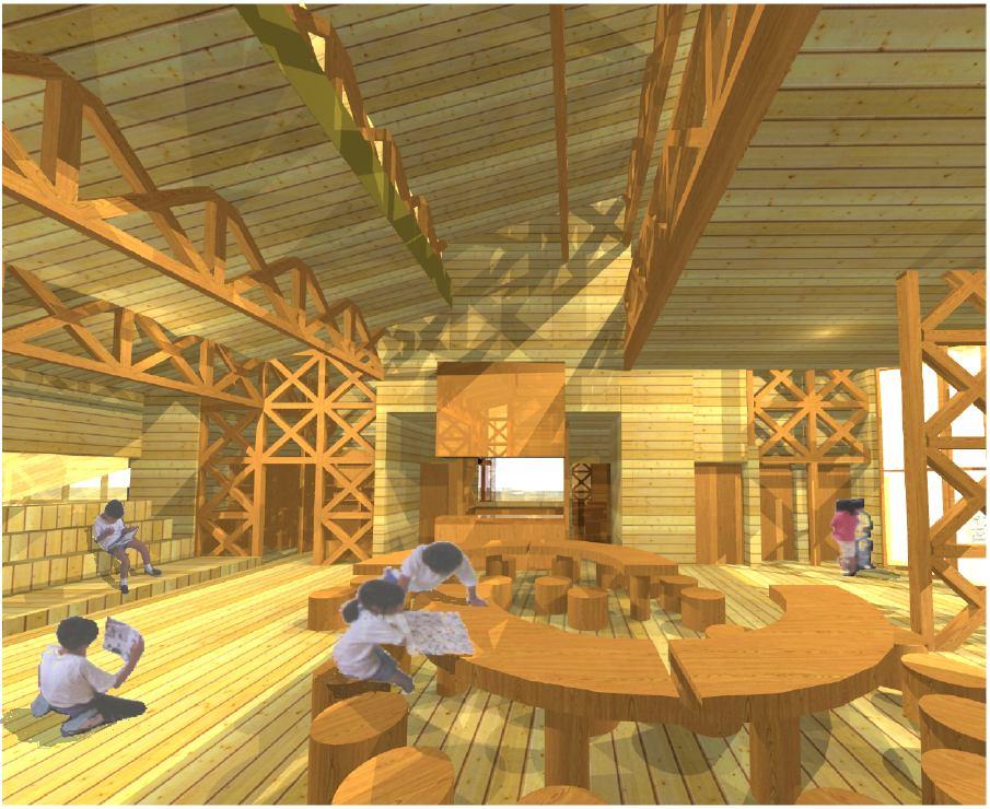 木材の良さを皆さんによく知っていただこうと 木材を生かす事をテーマに行われたアイデア設計競技。 間伐材を利用し、室内でもジャングルジムのように 登れたり、屋上緑化を施し、そこで草スキーを 楽しめたりと、建物そのものを遊具化し、自然と 接した空間体験をできるようにと提案し、その結果 評価をいただきました。 |